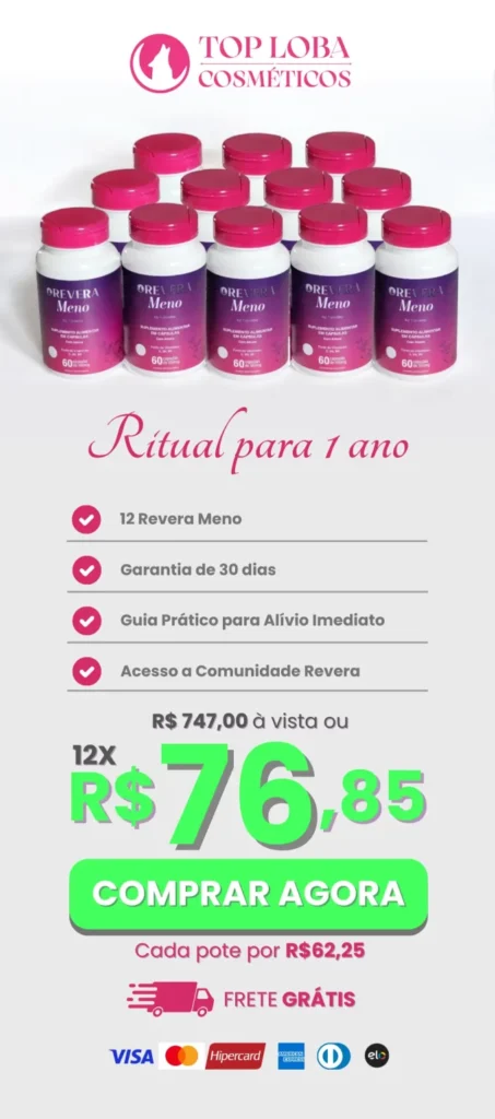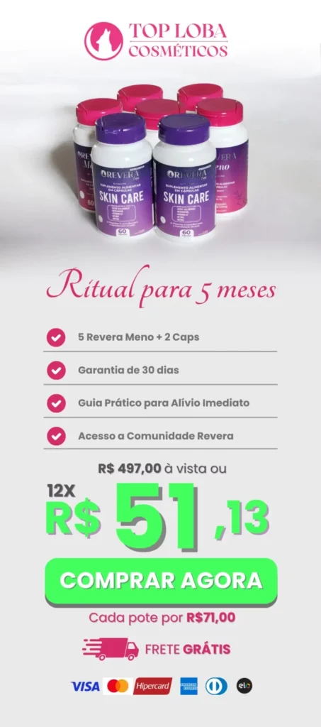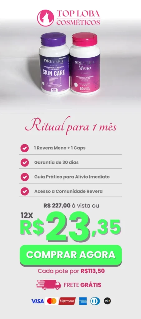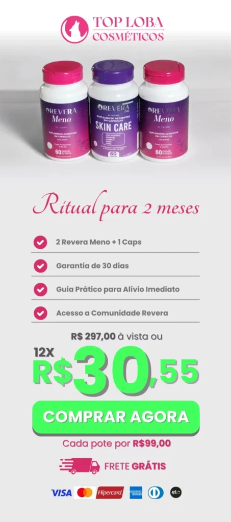 Por isso resolvi lançar meu próprio suplemento, melhorando ainda mais a fórmula. Como sou a produtora do ReveraCaps Skincare e tenho acesso aos melhores profissionais da indústria nutracêutica, não poderia deixar de ajudar a mim e às milhares de mulheres que sofrem com os sintomas da desregulação hormonal.